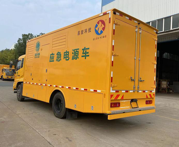 應急電源車是具有供電裝置的特種車輛,主要由汽車底盤、柴油發電機組、輸配電及操作系統、高效隔音、吸聲降噪箱、進排氣降噪系統、排氣消聲系統、照明系統、液壓支撐系統、電纜絞車和工具設備艙等組成。